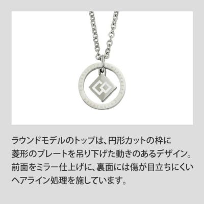 ファッションの一部としてさりげなく着用するだけで首・肩のコリケアができるチェーンタイプの磁気ネックレス。ラウンドモデルのトップは、円形カットの枠に菱形のプレートを吊り下げた動きのあるデザイン。素材には肌に優しくさびにくいステンレス(SUS316L)を採用していますので、肌が敏感な方でも安心して着用いただけます。