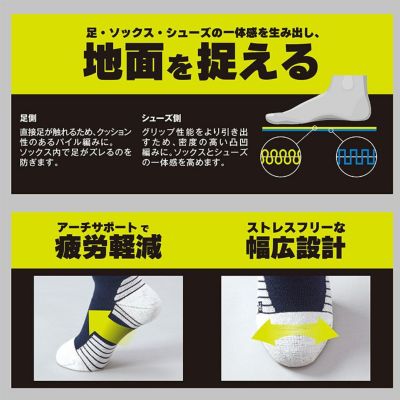 ●『ピタッと、ズレない。』そして足全体のズレるを無くすグリップソックス。
