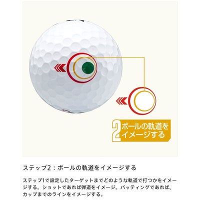 ジェイソン・デイのメンタルコーチとともに開発をした、ショット時の集中力を高める 3ステップのルーティン(ターゲットを決める・ボールの軌道をイメージする・ドットを見て集中する)をサポートし、イメージ通りのショットに導く「マインドセット」マークを搭載。