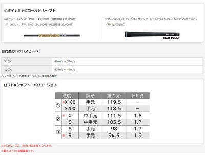 ※クラブ重さは変更になる場合があります。