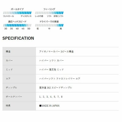 ソフトな打感と優れたアプローチスピン性能に加え、「高弾道 362 スピードディンプル」が空気抵抗を抑え「XXIO史上ナンバー1の飛び」を実現。
