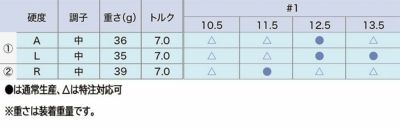 ●は通常生産、△は特注対応可 ※クラブ重さは、変更になる場合があります。