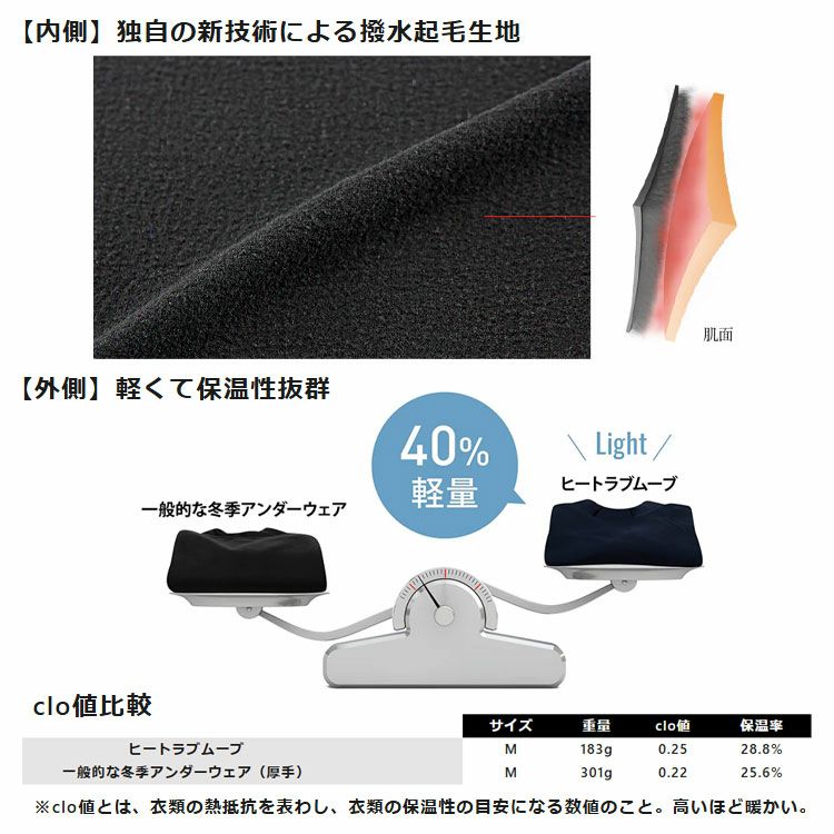 ヒートラブ ムーブプラス 長袖 モックネック