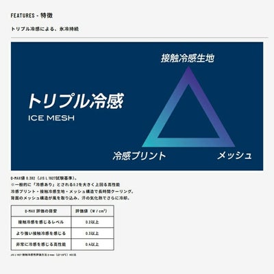 「接触冷感生地」「冷感プリント」「メッシュ構造」の3つの冷却技術を融合し、全身を包むクーリング効果を実現!
