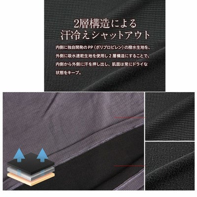 起毛させた撥水生地と吸水速乾生地の2層構造で汗冷えをシャットアウト。