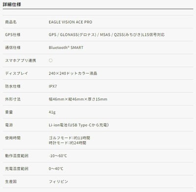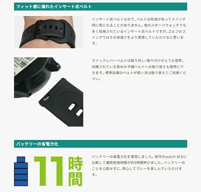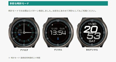 使用時間:ゴルフモード/約11時間 時計モード/約24時間
