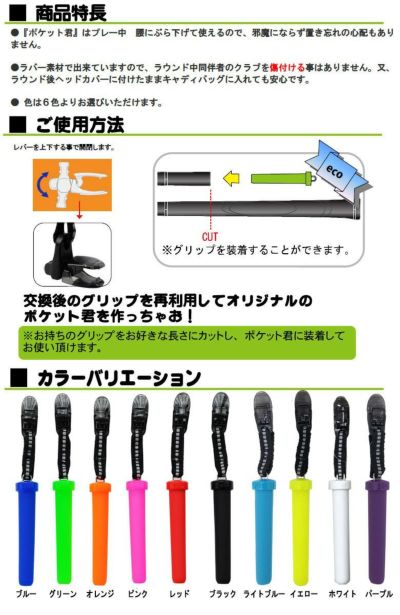 ポケット君はプレー中腰にぶら下げて使えるので、邪魔にならず置き忘れの心配もありません。