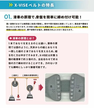 3. X-VISE クロスバイス動滑車式骨盤ベルト 正規品骨盤サポーター 腰痛対策 姿勢矯正