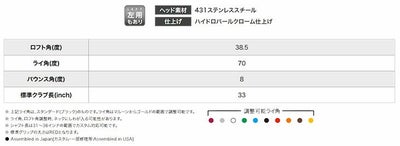 ※ 上記ライ角は、スタンダード(ブラック)のものです。ライ角はマルーンからゴールドの範囲で調整可能です。