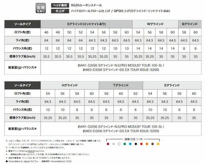 ※ 上記ライ角は、スタンダード(ブラック)のものです。ライ角はマルーンからゴールドの範囲で調整可能です。