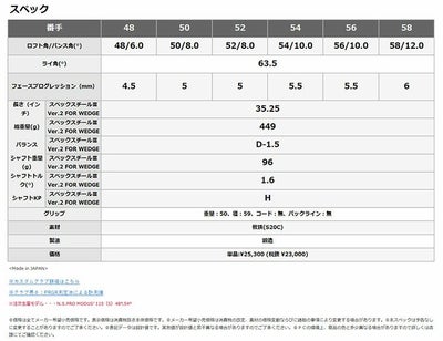 ロフト角/バンス角(°) 48/6.0 50/8.0 52/8.0 54/10.0 56/10.0 58/12.0