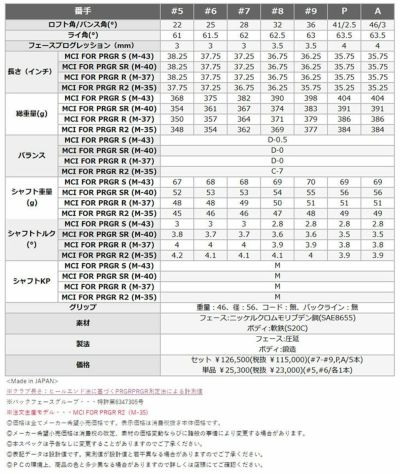 ※注文生産モデル・・・MCI FOR PRGR R2(M-35)