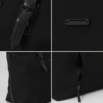 ベルトハンドルやロゴプレートがさりげないアクセントになった、メッシュボンディングトートバッグ。