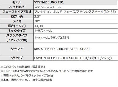 テーラーメイド システム2 ジュノ TB1 スペック