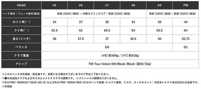 ※●は完成品クラブおよびカスタムメイドクラブでの展開です。 レフトハンドの展開はございません。