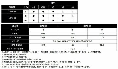 クラブ長さ(インチ)REAX6543.2542.2541.75