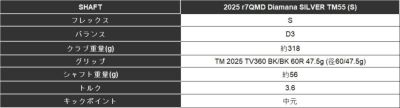 2025 r7QMD Diamana SILVER TM55 (S)シャフト