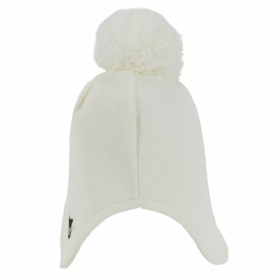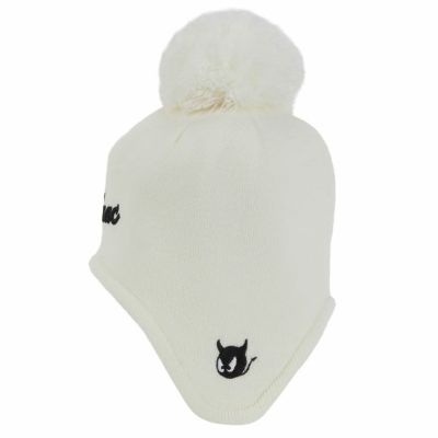 寒い季節のゴルフシーンに欠かせない、大きなポンポンが目を引く耳当て付きのニットキャップ。