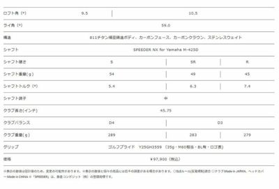 ◎クラブ:Made in JAPAN、ヘッドカバー:Made in CHINA ※「SPEEDER」は、藤倉コンポジット(株)の登録商標です。