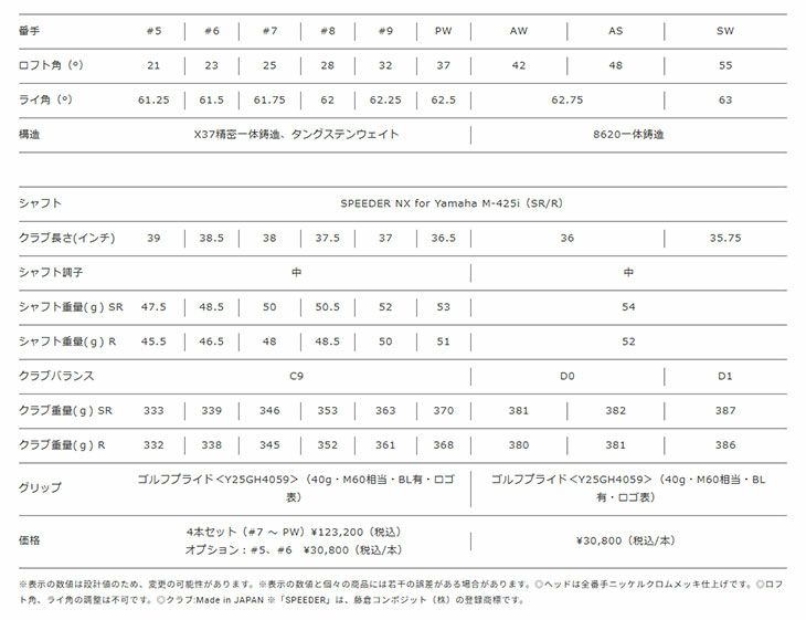 ヤマハオリジナル SPEEDER NX for Yamaha M-425i カーボンシャフト