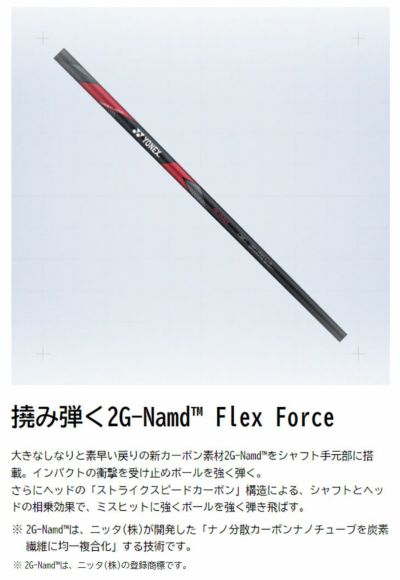 ヘッド素材 / 製法ヘッド:[本体]8AL-1Mo-1Vチタン精密鋳造、[フェース] Super-TIX51AF圧延材、[クラウン]2G-Namd Speed複合カーボン、[スリーブ]A7075アルミ合金、[ウエイトビス]タングステン合金