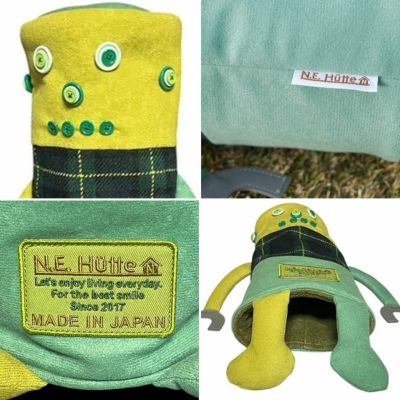 ユニークな印象を与えるため、右腕と右脚はオリーブグリーン色、左腕と左脚はリーフグリーン色、何れもスウェード調ファブリック素材で、左右非対称なデザインになっています。