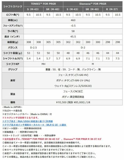 注文生産モデル...TENSEI FOR PRGR SR (M-40) 9.5°、Diamana FOR PRGR R (M-37) 9.5°