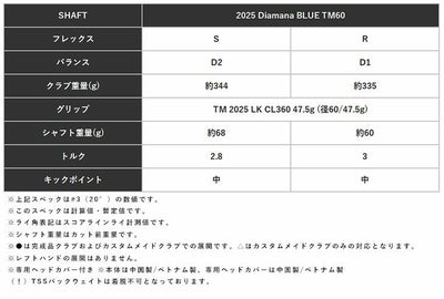 SHAFT2025 Diamana BLUE TM60