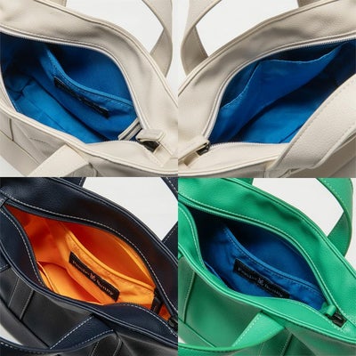 ソフトでレザーライクな合皮皮革のラウンドトートバック。