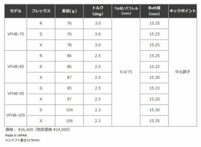 硬度設定をより高め105、95では手元側は細身の形状を持たせ、先端側の硬さを際立たせる。85、75では、より手元調子にすることで低弾道化を実現しました。