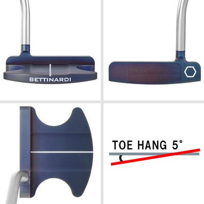 BB7.0 ストックはストローク中のアークが少なくフルボディのマレットタイプを好むプレーヤーのために設計されました。ベティナルディ最初のメジャートーナメント優勝パターからインスピレーションを得た高MOIヘッド形状は、優れた安定性と高い寛容性を実現し、アライメントの容易さでは他の追随を許しません。 また新開発のVDF(バリアブル・デプス・フライミル)フェースミリングは、フェース面上に精密に加工された9つのゾーンが異なるグルーブ深さを持ち、どこでヒットしても最適なエネルギー伝達を実現、安定したボールスピードと距離をもたらします。