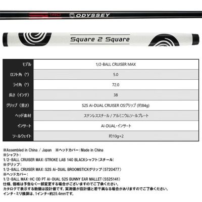 4. 【中尺・ゼロトルク】オデッセイ Ai-DUAL Square 2 Square CRUISER1/2-BALL MAX ODYSSEY デュアル スクエア2スクエア クルーザー CRSR キャロウェイ1/2 ボール マックス ゼロトルクパター 中尺38インチ