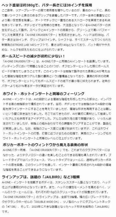 3. 【中尺パター】オデッセイ Ai-One クルーザー パターPutterSEVEN,DW,JAIL BIRD,