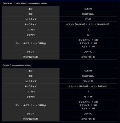 ピンタイプ2機種はタングステンプレートを装着する事によりヒール重心になり、ヒールを軸にパッティングすることによりストロークが安定する。