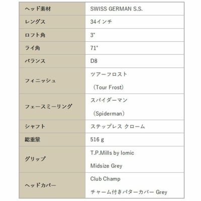 3. 【数量限定】TPミルズ クラブチャンプ リミテッド パター トラッド2 ツアーフロストClub Champ Limited Putter"Trad2 Tour Frost RH 34"T.P.MILLS HTTS-000019