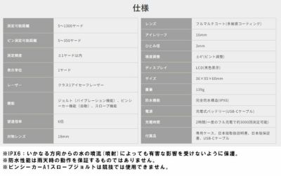 小柄ながらIPX6の完全防水で350ヤードまでのピンフラッグ測定可能距離を誇る。