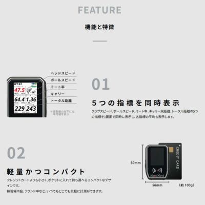クラブスピード、ボールスピード、スマッシュファクター(ミート率)など、スイングに関わる様々な指標データを計測。