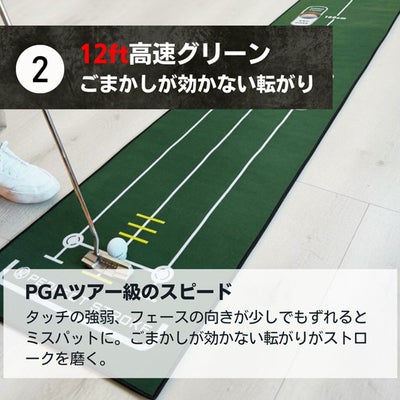 ■【PGAツアー級の高速グリーン(約12ft)】ごまかしの効かない高速グリーンを再現。距離感・タッチ・集中力を実戦レベルで鍛えます。