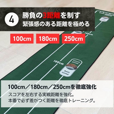 ■【100cm・180cm・250cm の3距離設計】本番でスコアを左右するショートからミドルパットを重点的にトレーニングできます。