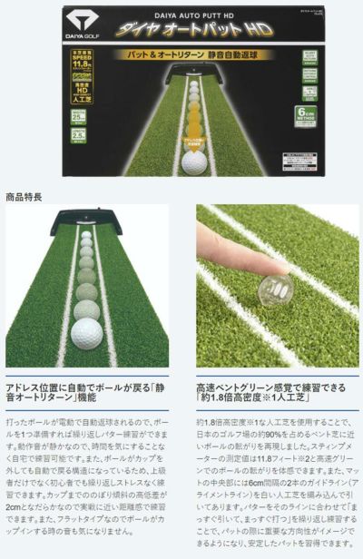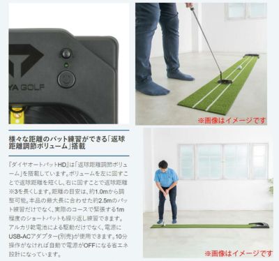 打ったボールがアドレス位置に自動で戻る「静音オートリターン」機能を採用した電動式パターマット。
