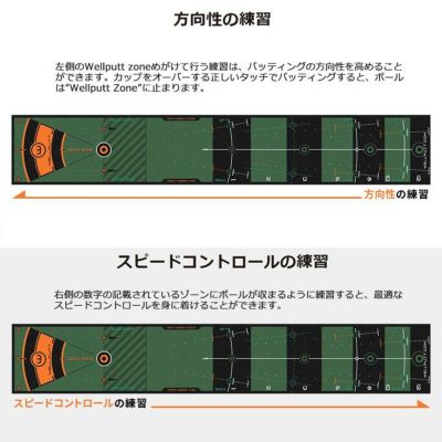 カップを30~43cmオーバーする最適なタッチを導くWellputtゾーンのほかに、アイポジションマーカー、フェースアラインメントライン、ストロークガイドライン等パッティング上達のための技術を盛り込んだメインモデルです。