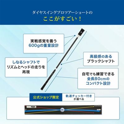 従来の人気モデル『ダイヤスイングプロツアー』の機能性はそのままに、全長80cmの短尺仕様にしました。限られたスペースでも扱いやすく、自宅でのスイング練習が日常に取り入れやすくなりました。
