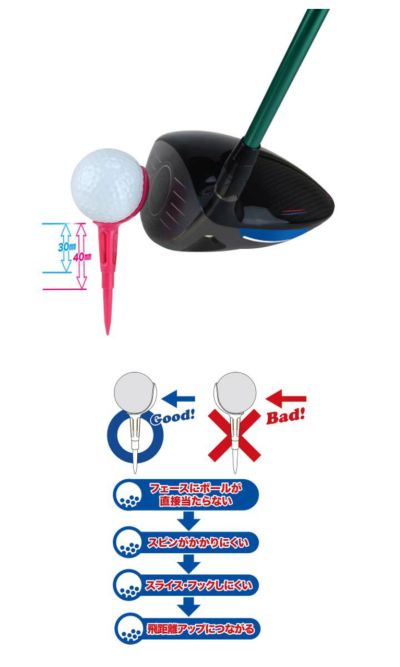 ●2段構造:2段構造により30㎜と40㎜のティーアップが可能です