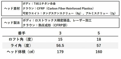 ヘッド製法ボディ:ロストワックス精密鋳造、レーザー加工、クラウン:熱圧成形(CFRP部)