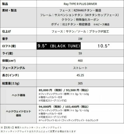 ロマロ Romaro Ray TYPE R PLUS DRIVER スペック