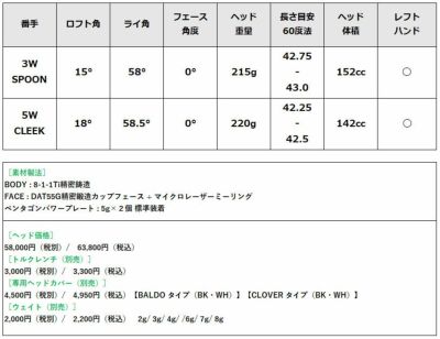 BALDO TT FAIRWAY WOOD GT PROTO SPOON & CLEEK スペック
