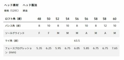 ロフト角(°)485052545656585860