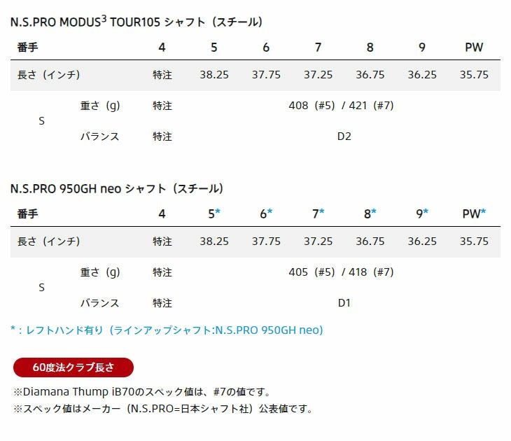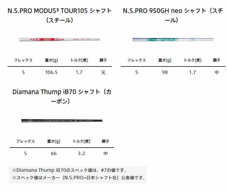 | N.S.PRO SHAFT シャフトラインナップ |