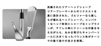 ツアープレーヤーからのリクエストを基に設計された、ゴルファーなら誰しもが憧れるヘッドシェープ。コンパクトなヘッド形状にシャープなトップラインが、アドレス時にクリーンな印象を与えながらも、丸みを帯びたキャンバーソールに大きくなったバウンス角がターフでの振り抜けの良さを実現。