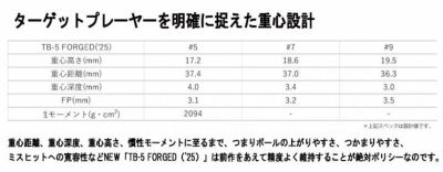 重心距離、重心深度、重心高さ、慣性モーメントに至るまで、つまりボールの上がりやすさ、つかまりやすさ、 ミスヒットへの寛容性などNEW「TB-5 FORGED('25)」は前作をあえて精度よく維持することが絶対ポリシーなのです。